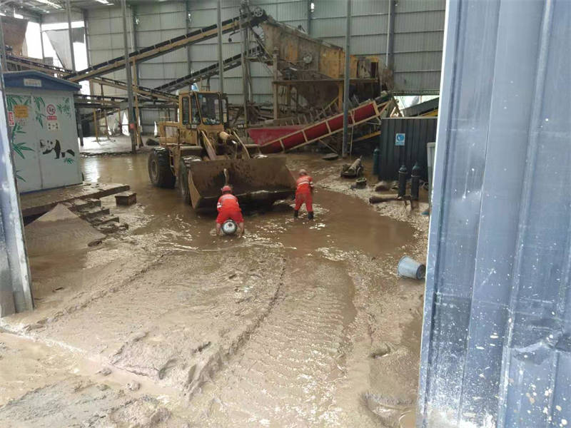 8月19日-22日受持續(xù)強降雨影響,雅安交建集團云石建材公司生產設備全部被水浸泡,多處生產、生活設施被水沖毀。8月23日隨著天氣轉晴,本著“不等、不靠、不要,不懈怠”的精神,云石建材公司立即安排部署進行災后自救,為恢復生產做好準備。