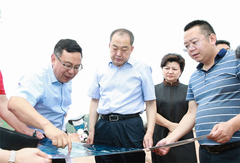 在雅安無水港鳳鳴物流園項目場平施工現(xiàn)場,蘭開馳聽取了項目業(yè)主交建集團黨委書記、董事長漆家華的工作匯報,詳細了解無水港物流項目規(guī)劃、建設進展、業(yè)態(tài)布局等情況。
