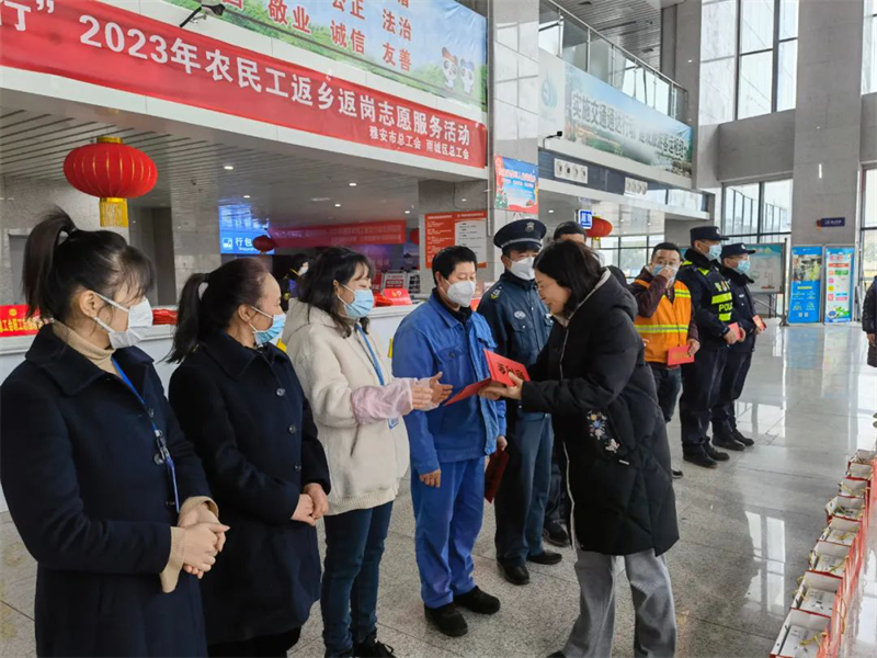 在雅安市汽車客運(yùn)站,李蓉調(diào)研了工會(huì)系統(tǒng)2023年農(nóng)民工返鄉(xiāng)返崗志愿服務(wù)活動(dòng)開(kāi)展情況,看望慰問(wèn)了民警、汽車客運(yùn)站職工、保安保潔等春運(yùn)一線人員,向大家致以新春祝福。李蓉要求,全市各級(jí)工會(huì)組織要統(tǒng)籌資源、精心組織,認(rèn)真做好送溫暖、農(nóng)民工返鄉(xiāng)返崗志愿服務(wù)活動(dòng)等工作,切實(shí)把黨和政府的關(guān)心關(guān)懷與工會(huì)組織的溫暖送到廣大職工群眾心坎上。