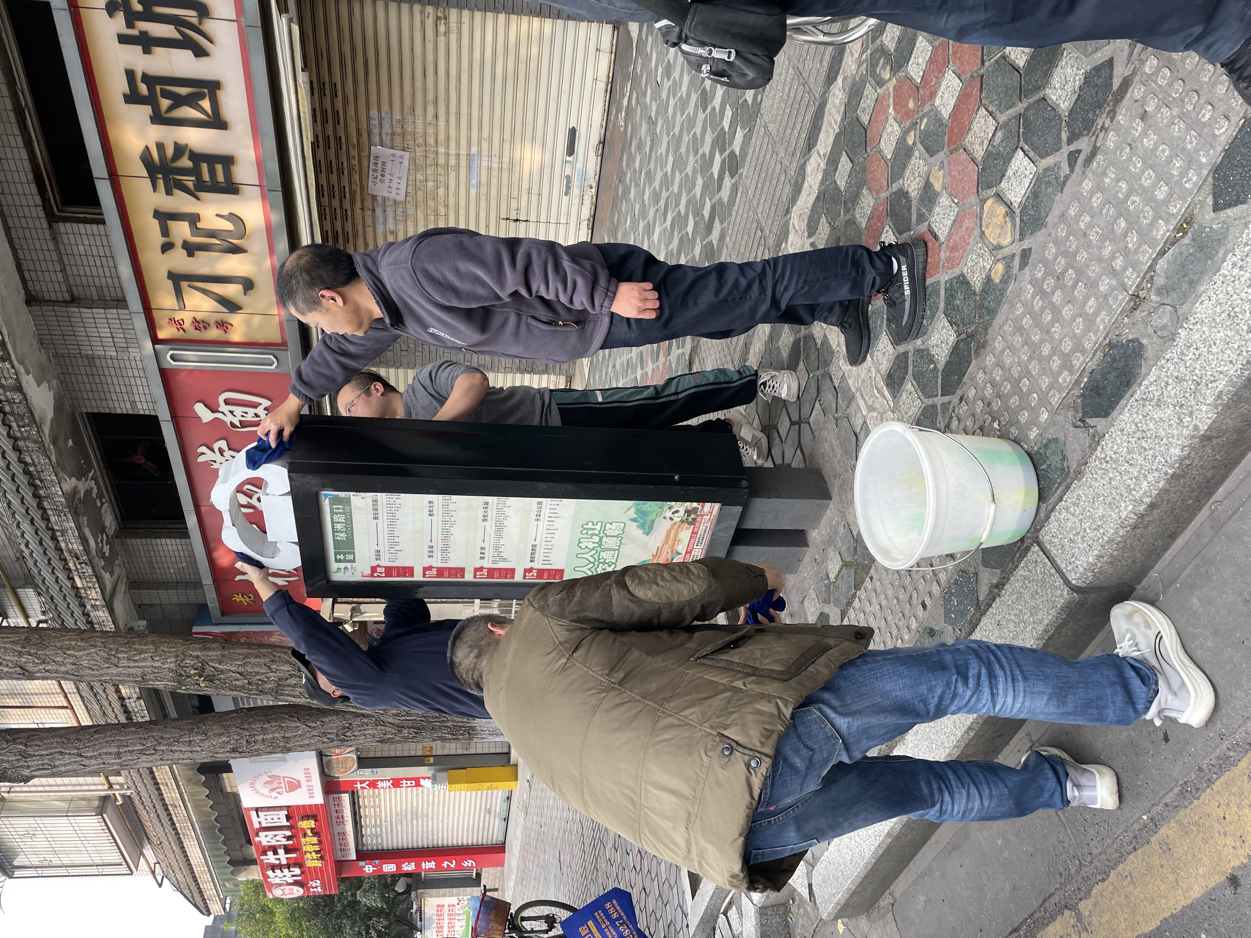 活動(dòng)當(dāng)天,黨員們手持抹布、水桶等清潔工具,兵分多路奔赴各個(gè)公交站點(diǎn)。大家不怕臟、不怕累,認(rèn)真細(xì)致地清理站牌,有的踮起腳尖、伸長(zhǎng)手臂,用抹布仔細(xì)擦拭站牌的櫥窗玻璃;有的提著水桶,清洗傳遞抹布,打好“下手”;還有的手持鏟刀,認(rèn)真刮去站牌上的“牛皮癬”廣告。