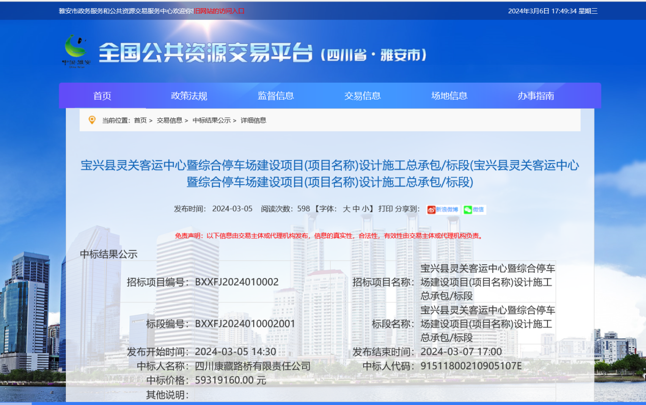 日前,雅安交建集團康藏路橋公司中標寶興縣靈關(guān)客運中心暨綜合停車場建設項目,取得2024市場開發(fā)“開門紅”。