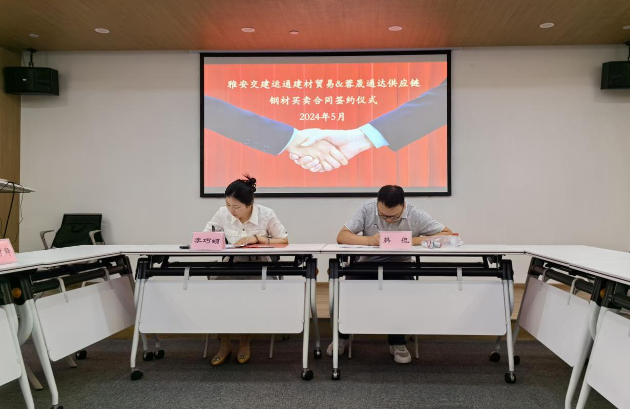 近日,雅安交建集團運通建材貿(mào)易有限公司(以下簡稱:建材公司)與四川蓉晟通達供應鏈管理有限公司(以下簡稱:蓉晟通達公司)在成都舉行鋼材買賣合同簽約儀式,標志著建材公司順利完成2024年度首個市外貿(mào)易業(yè)務的簽訂工作,且合同金額超2300萬元。