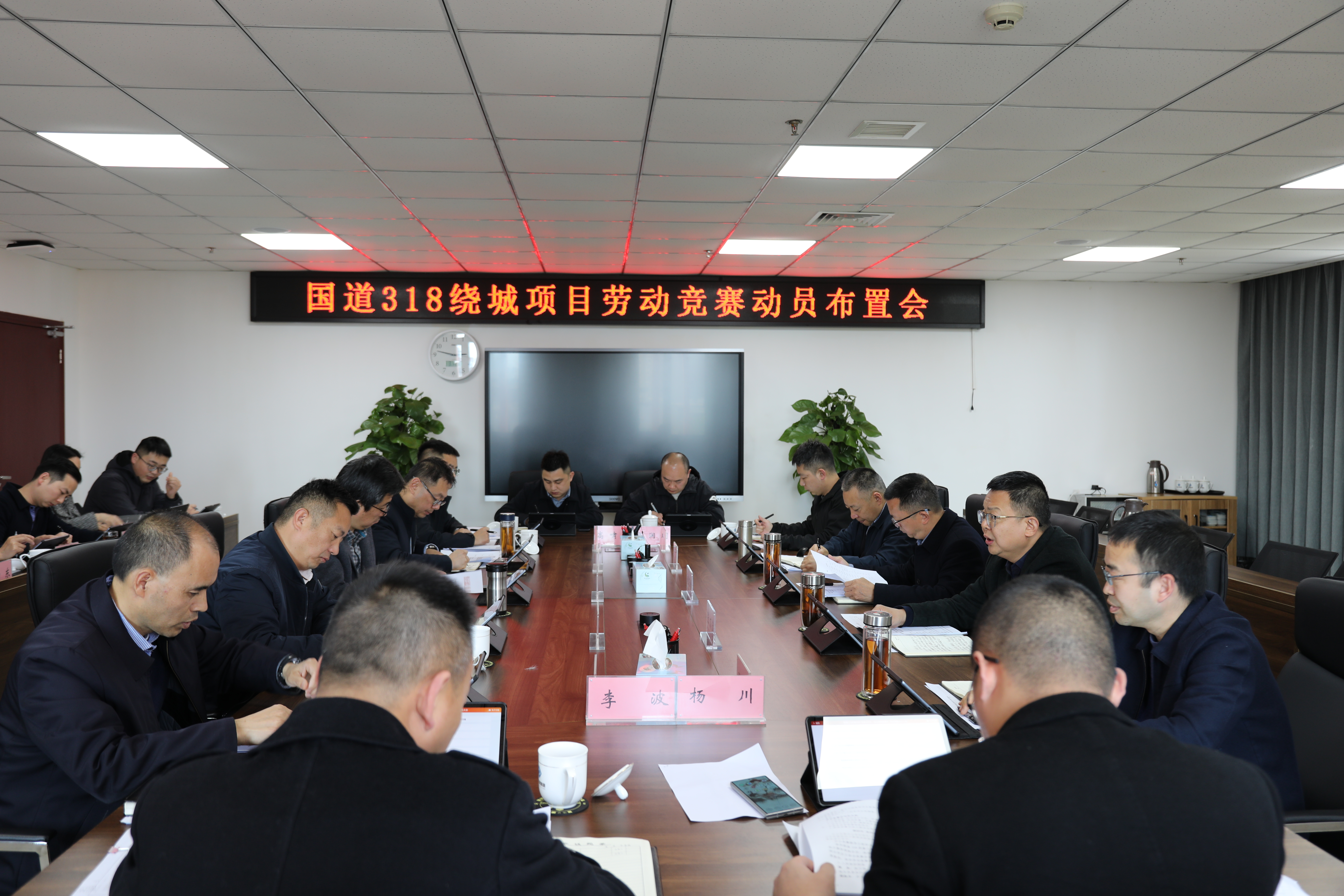 會議通報了國道318項目推進情況及“決戰(zhàn)120天”勞動競賽工作方案,明確了競賽內(nèi)容、節(jié)點目標及考核獎懲措施。會上,業(yè)主、設(shè)計、施工、監(jiān)理等參建單位分別作表態(tài)發(fā)言。總工程師程學強就下一步重點工作進行了具體布置,黨委副書記張萬清,黨委委員、副總經(jīng)理王華結(jié)合分管工作提出了具體要求。與會單位一致表示,將堅決響應(yīng)號召,全力以赴、精心組織,確保完成競賽任務(wù)。