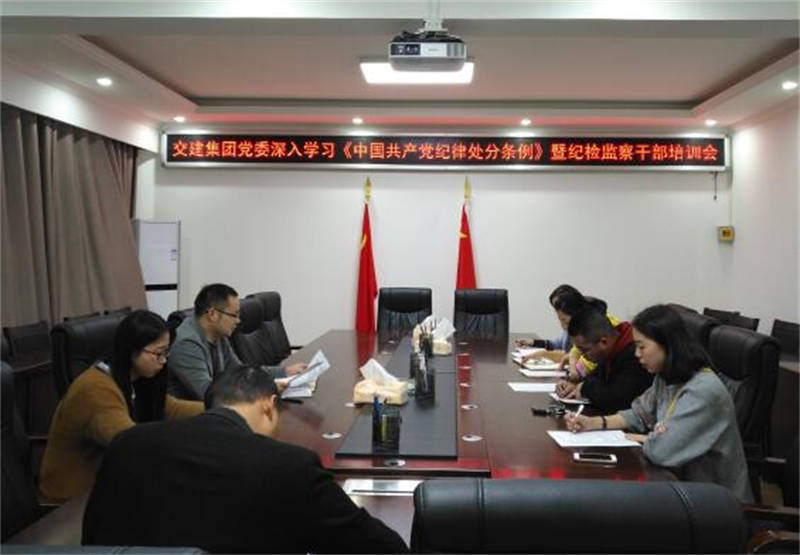 11月1日,交建集團紀(jì)檢監(jiān)察室在公司四樓會議室召開學(xué)習(xí)貫徹《中國共產(chǎn)黨紀(jì)律處分條例》暨紀(jì)檢監(jiān)察干部培訓(xùn)會,集團黨委辦公室全體人員,各子公司黨務(wù)工作、紀(jì)檢工作人員參加培訓(xùn)。