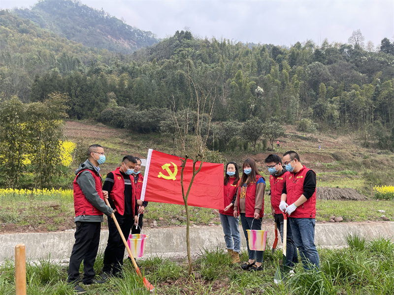 在植樹活動的現(xiàn)場,黨旗迎風(fēng)招展,同志們齊心協(xié)力揮锨整地、挖坑植苗、填土加固、提水澆灌,一絲不茍地對待每個環(huán)節(jié),精心栽下一株株樹苗。雖然每個人的鞋上都沾上了泥水,但看著親手種下的棵棵樹苗,大家臉上滿是欣喜,紛紛在自己種下的小樹苗前合影留念,給植樹場地再添一抹靚色。