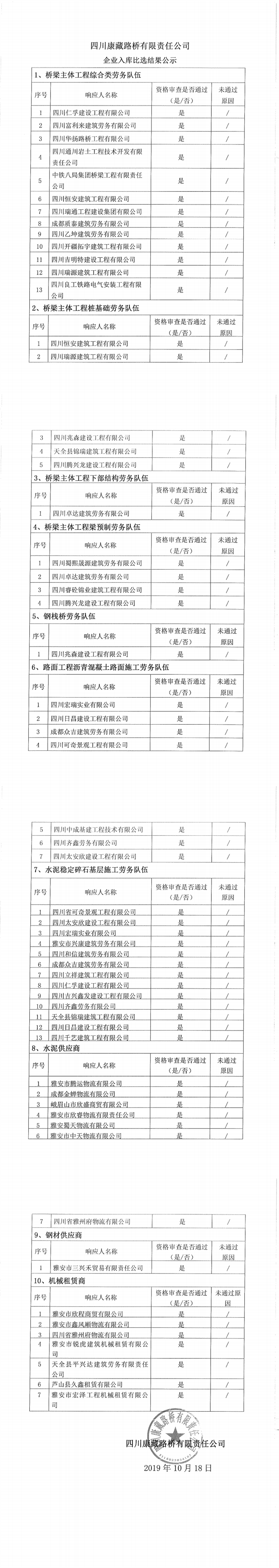 四川康藏路橋有限責任公司企業(yè)入庫比選結(jié)果公示