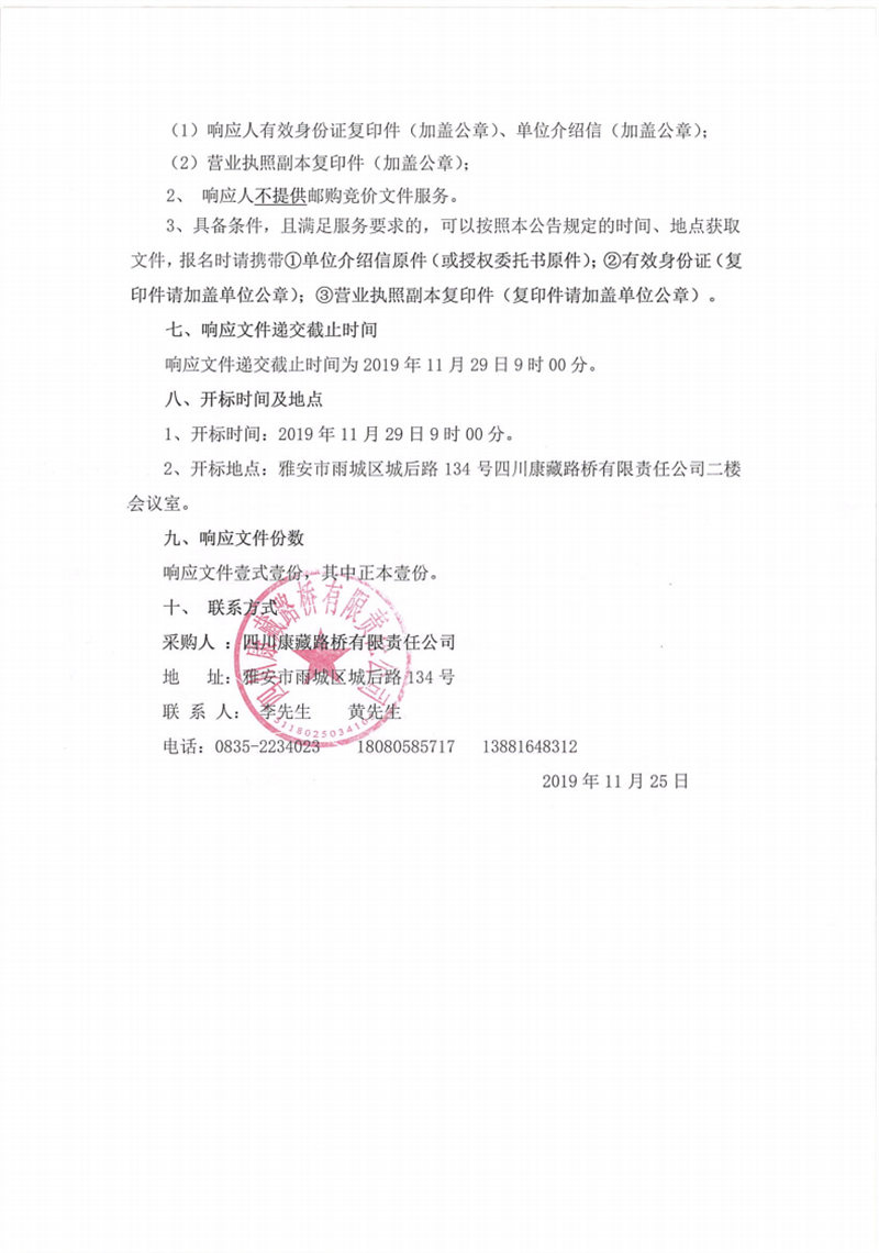 四川康藏路橋有限責(zé)任公司蘆山縣龍門、大川等8個(gè)鄉(xiāng)鎮(zhèn)基礎(chǔ)設(shè)施恢復(fù)提升工程項(xiàng)目施工勞務(wù)競(jìng)價(jià)公告