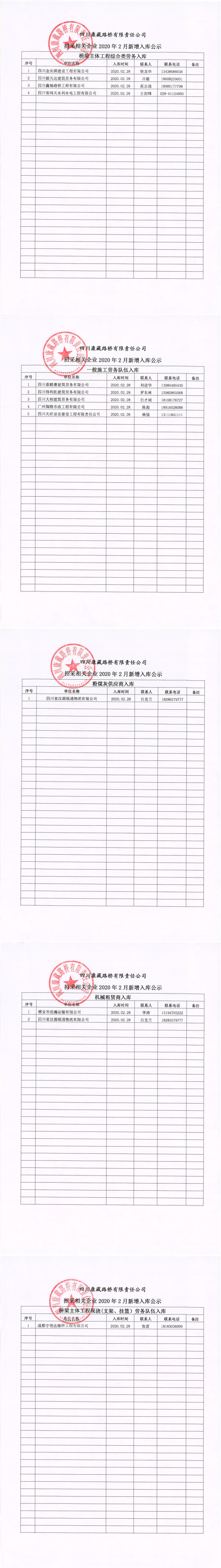 四川康藏路橋有限責(zé)任公司招采相關(guān)企業(yè)2020年2月新增入庫(kù)公示