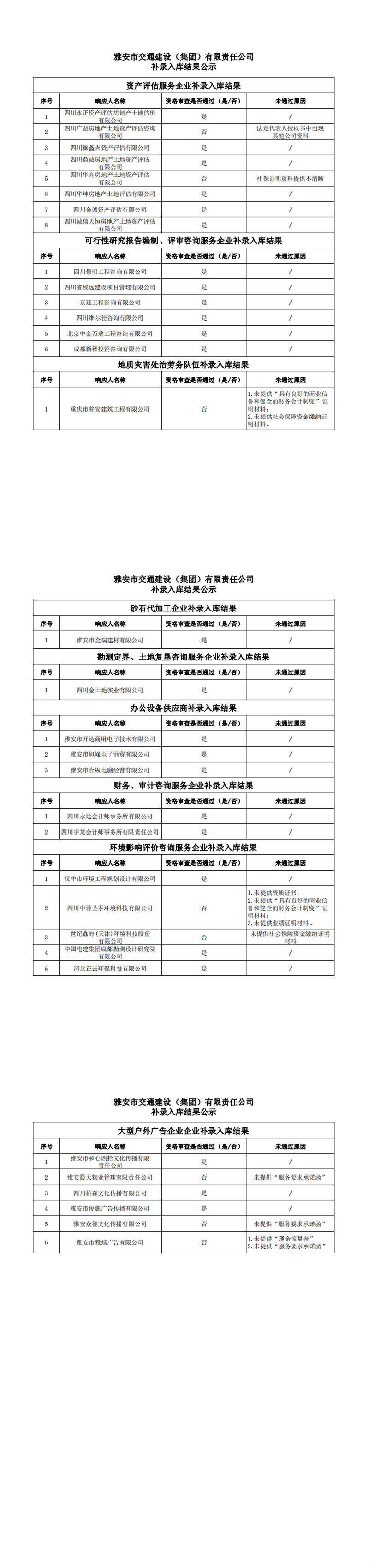 雅安市交通建設(shè)(集團)有限責(zé)任公司補錄入庫結(jié)果公示