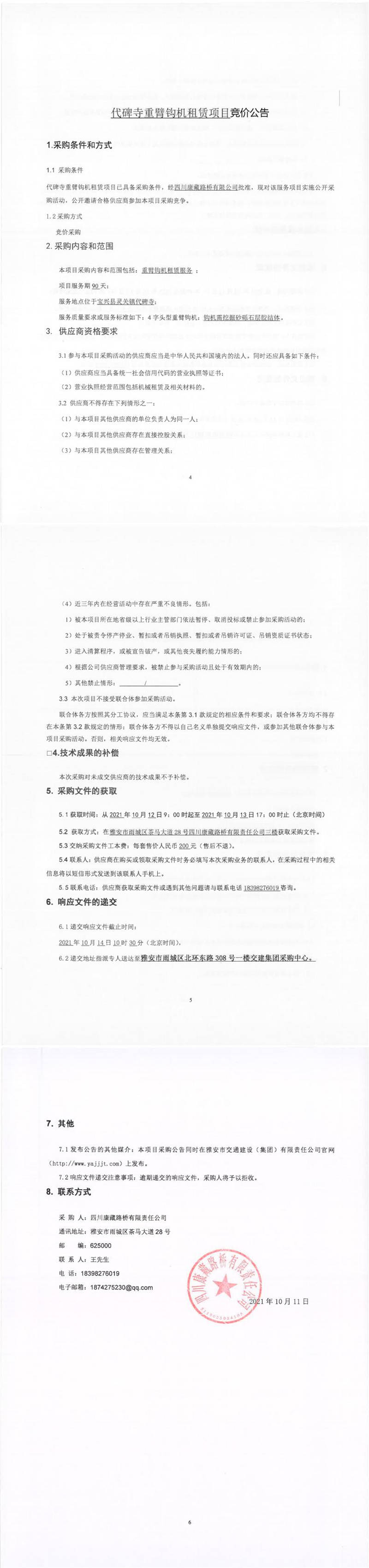 四川康藏路橋有限責(zé)任公司代碑寺重臂鉤機(jī)租賃項(xiàng)目競價(jià)公告