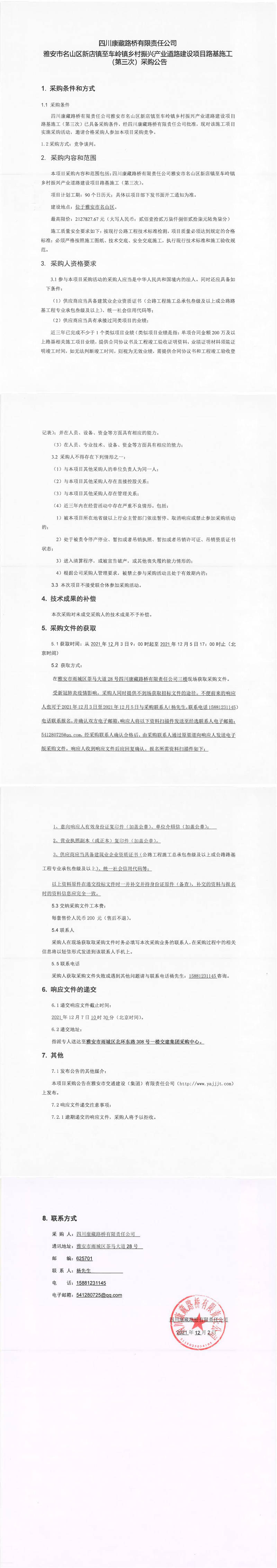 四川康藏路橋有限責(zé)任公司雅安市名山區(qū)新店鎮(zhèn)至車嶺鎮(zhèn)鄉(xiāng)村振興產(chǎn)業(yè)道路建設(shè)項(xiàng)目路基施工(第三次)采購公告