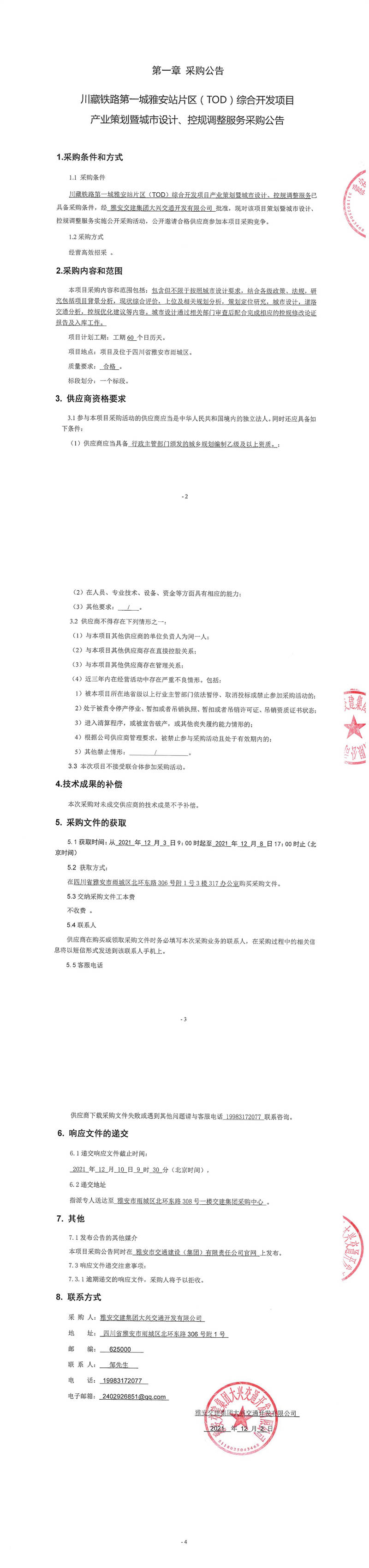雅安交建集團(tuán)大興交通開(kāi)發(fā)有限公司川藏鐵路第一城雅安站片區(qū)(TOD)綜合開(kāi)發(fā)項(xiàng)目產(chǎn)業(yè)策劃暨城市設(shè)計(jì)、控規(guī)調(diào)整服務(wù)采購(gòu)公告