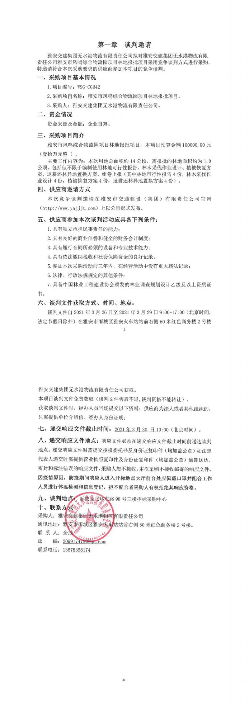 雅安交建集團(tuán)無水港物流有限責(zé)任公司雅安市鳳鳴綜合物流園項(xiàng)目林地報批項(xiàng)目競爭談判公告