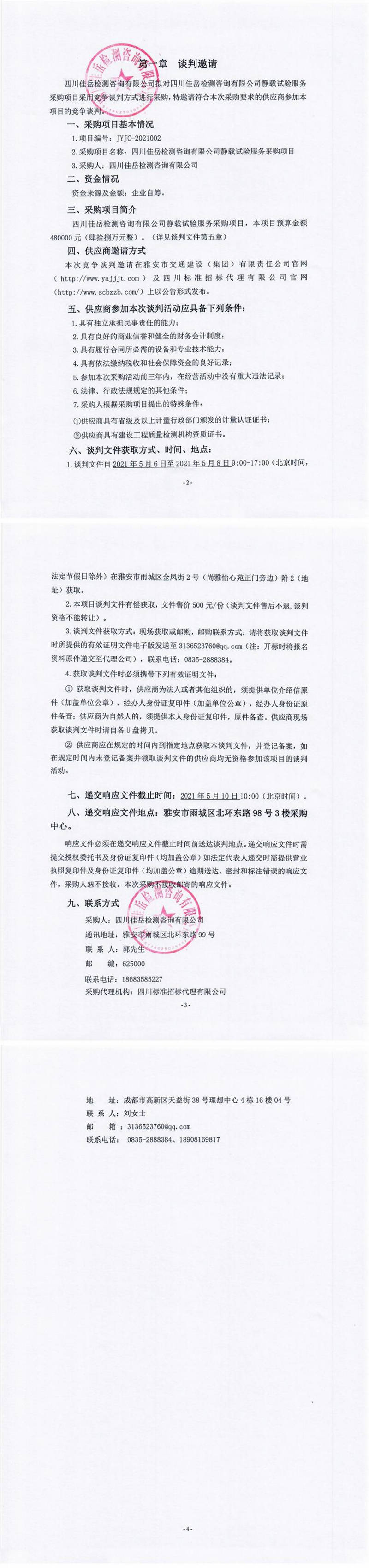 四川佳岳檢測(cè)咨詢有限公司靜載試驗(yàn)服務(wù)采購項(xiàng)目競(jìng)爭(zhēng)談判公告