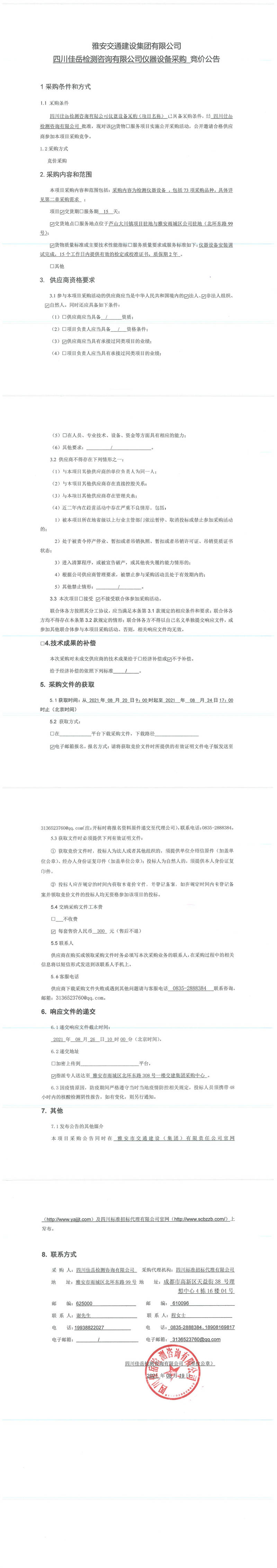 雅安交通建設集團有限公司四川佳岳檢測咨詢有限公司儀器設備采購競價公告