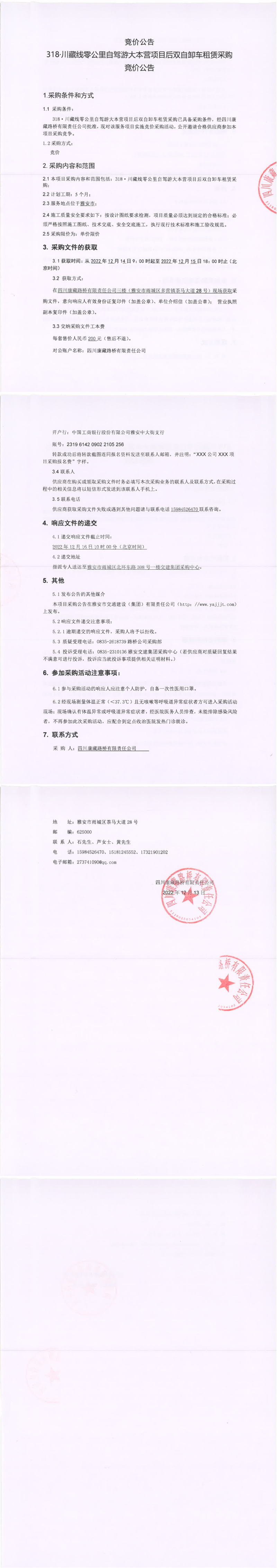 四川康藏路橋有限責(zé)任公司318.川藏線零公里自駕游大本營(yíng)項(xiàng)目后雙自卸車租賃采購(gòu)競(jìng)價(jià)公告