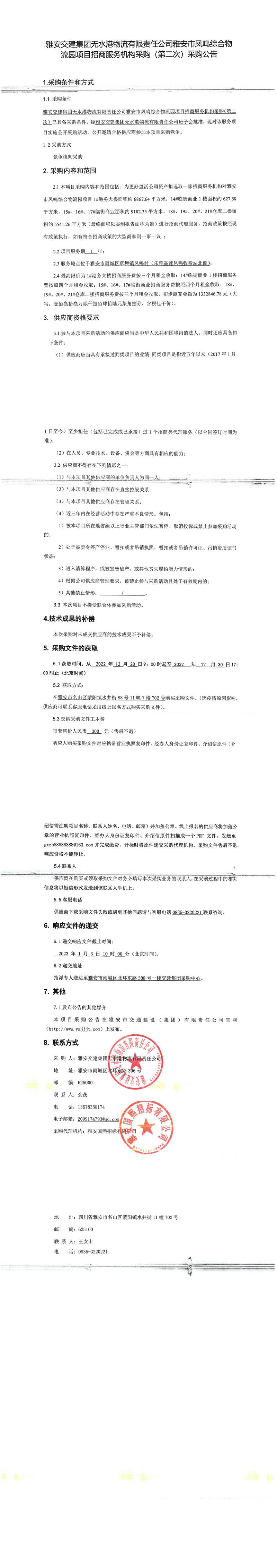雅安交建集團無水港物流有限責任公司雅安市鳳鳴綜合物流園項目招商服務(wù)機構(gòu)采購(第二次)采購公告