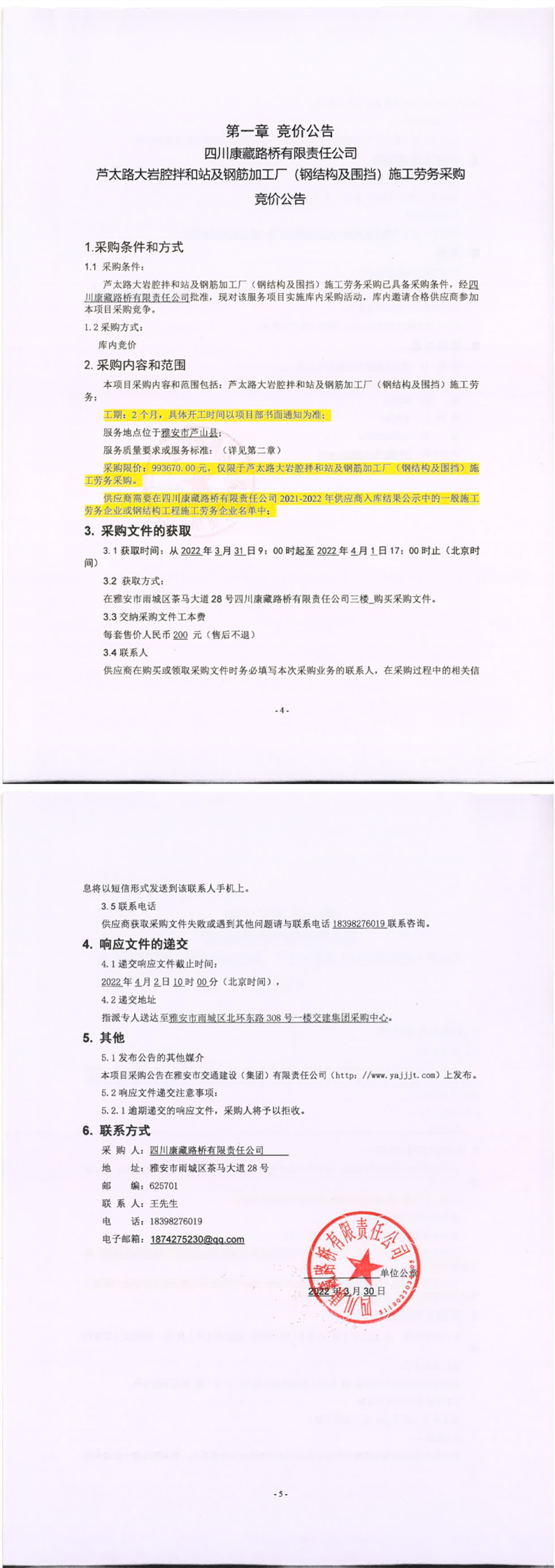 四川康藏路橋有限責(zé)任公司蘆太路大巖腔拌和站及鋼筋加工廠(鋼結(jié)構(gòu)及圍檔)施工勞務(wù)采購競價公告