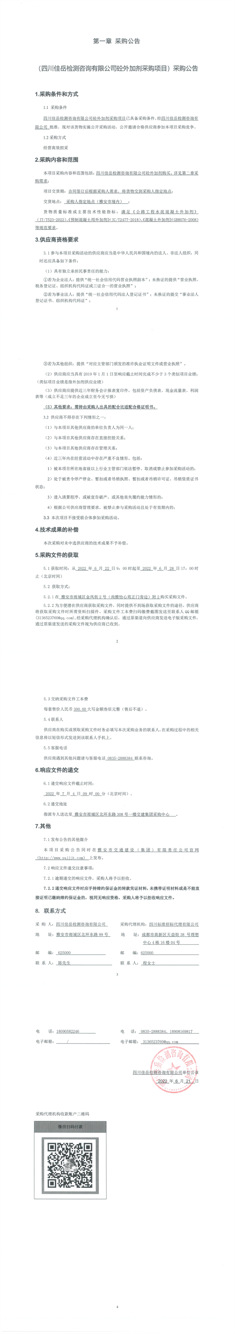 四川佳岳檢測(cè)咨詢有限公司砼外加劑采購(gòu)項(xiàng)目采購(gòu)公告