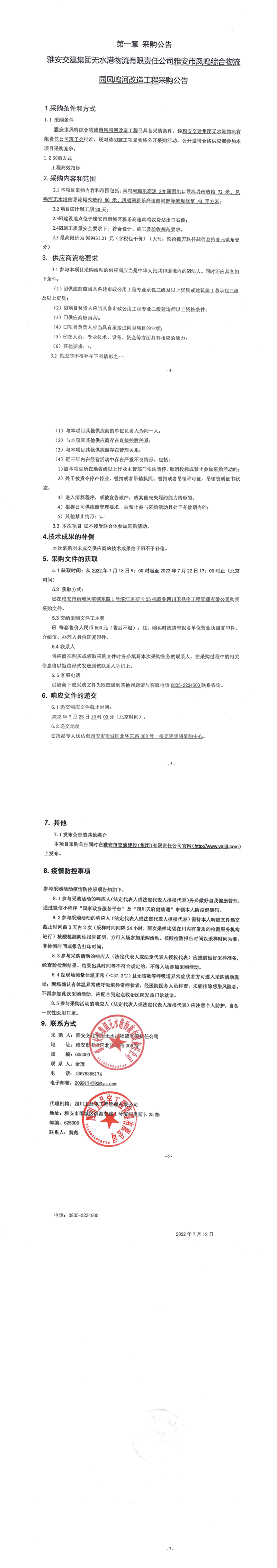 雅安交建集團無水港物流有限責(zé)任公司雅安市鳳鳴綜合物流園鳳鳴河改造工程采購公告