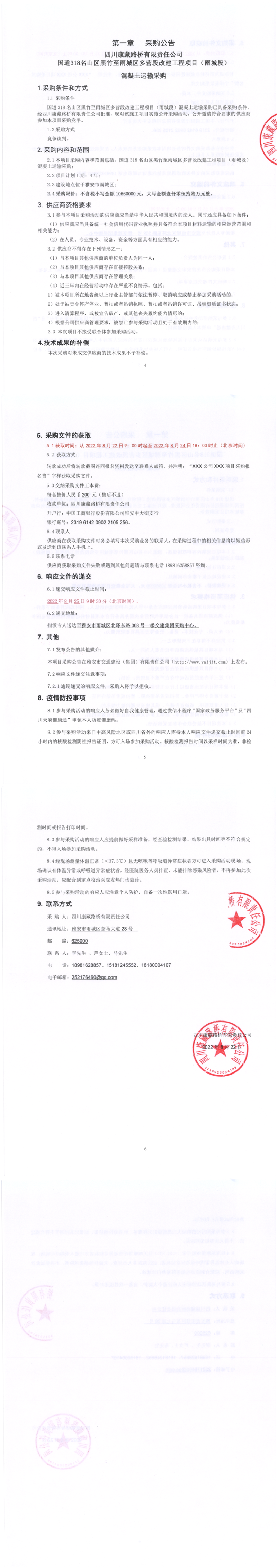 四川康藏路橋有限責(zé)任公司國道318名山區(qū)黑竹至雨城區(qū)多營段改建工程項目(雨城段)混凝土運輸采購公告