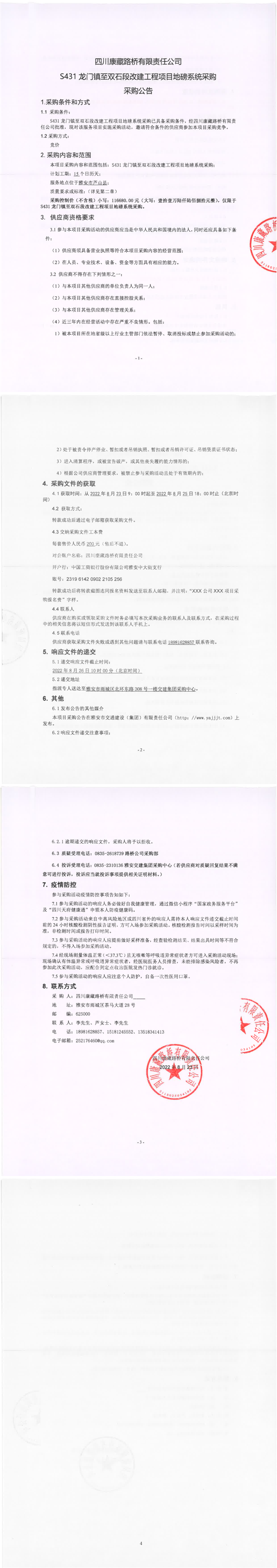 四川康藏路橋有限責(zé)任公司S431龍門(mén)鎮(zhèn)至雙石段改建工程項(xiàng)目地磅系統(tǒng)采購(gòu)采購(gòu)公告