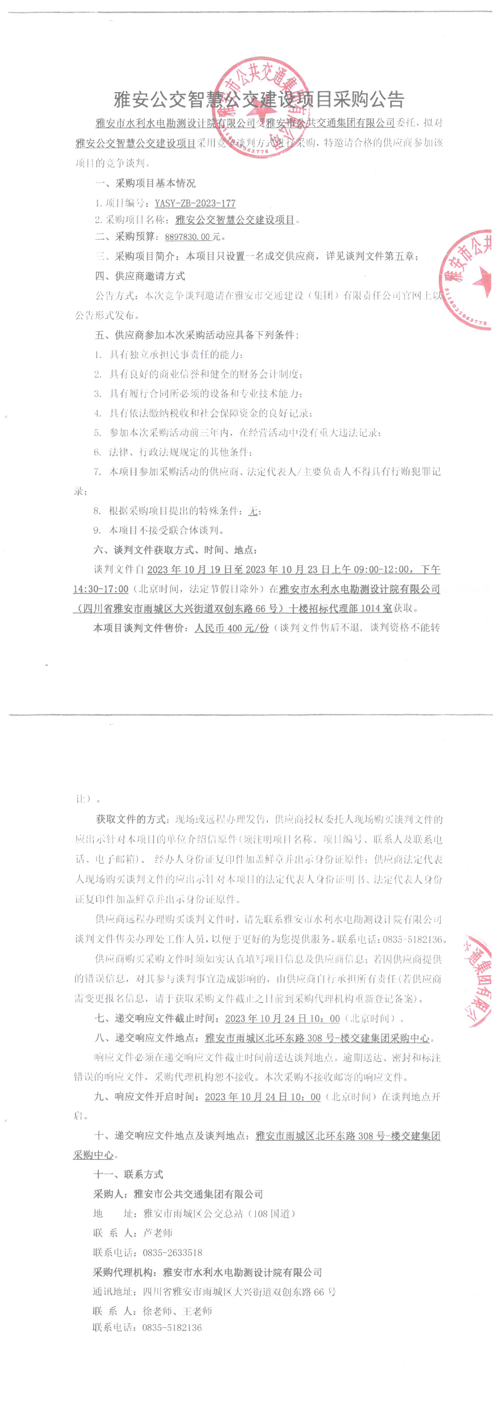 雅安市公共交通集團(tuán)有限公司雅安公交智慧公交建設(shè)項目采購公告