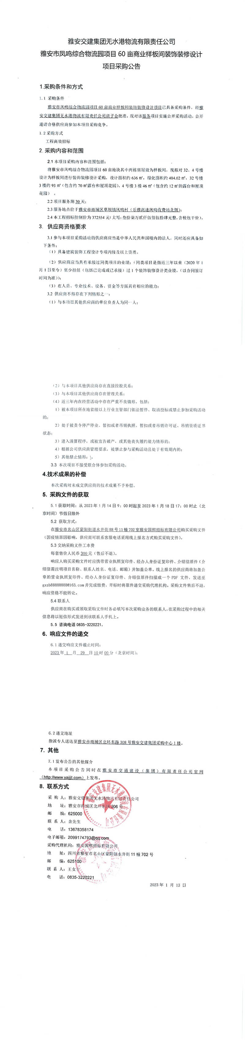 雅安交建集團無水港物流有限責(zé)任公司雅安市鳳鳴綜合物流園項目60畝商業(yè)樣板間裝飾裝修設(shè)計項目采購公告