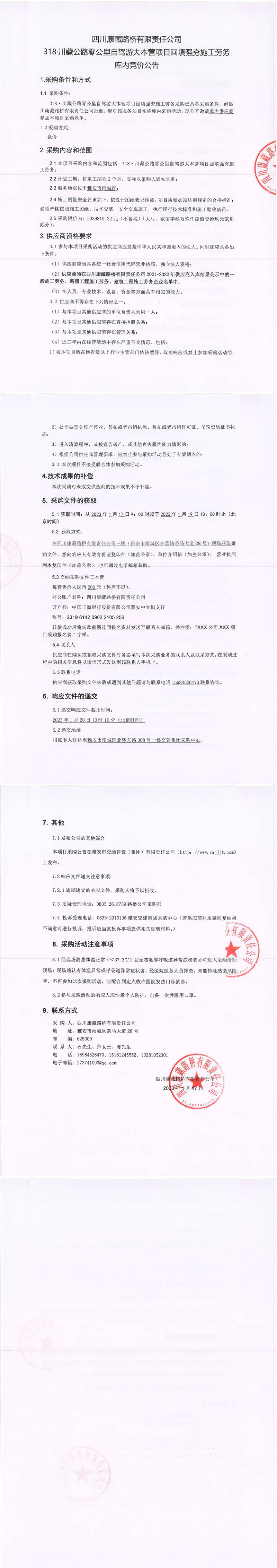 四川康藏路橋有限責(zé)任公司318.川藏公路零公里自駕游大本營(yíng)項(xiàng)目回填強(qiáng)夯施工勞務(wù)庫內(nèi)競(jìng)價(jià)公告