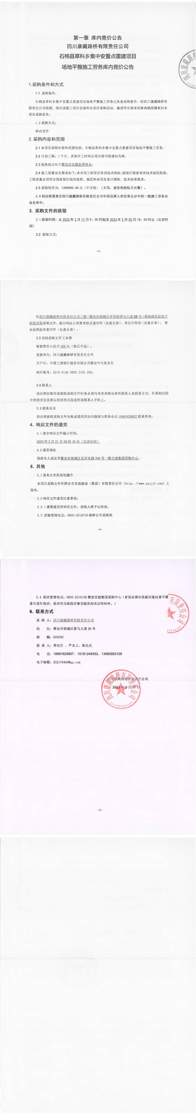 四川康藏路橋有限責(zé)任公司石棉草科鄉(xiāng)集中安置點(diǎn)重建項(xiàng)目場(chǎng)地平整施工勞務(wù)庫(kù)內(nèi)競(jìng)價(jià)公告