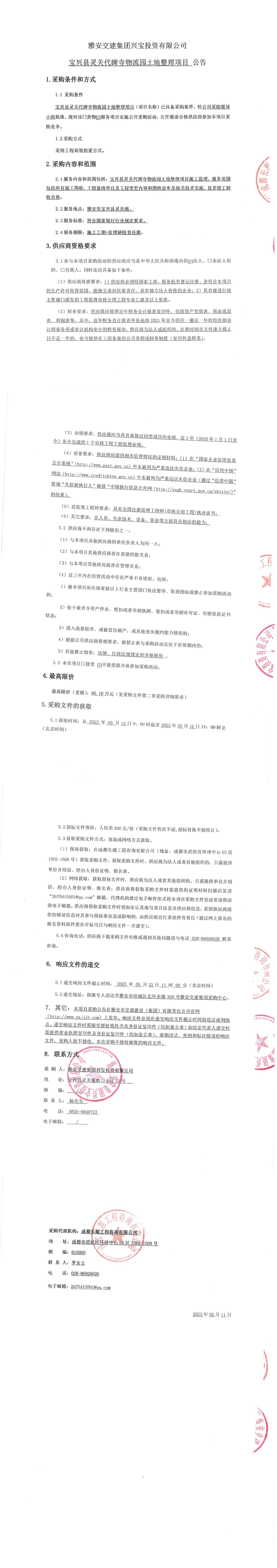 雅安交建集團(tuán)興寶投資有限公司寶興縣靈關(guān)代碑寺物流園土地整理項目公告