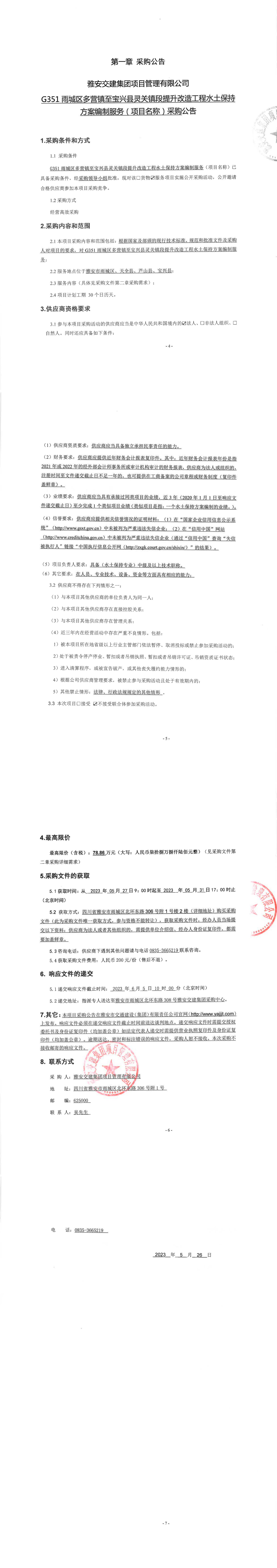 雅安交建集團(tuán)項(xiàng)目管理有限公司G351雨城區(qū)多營(yíng)鎮(zhèn)至寶興縣靈關(guān)鎮(zhèn)段提升改造工程水土保持方案編制服務(wù)(項(xiàng)目名稱)采購公告
