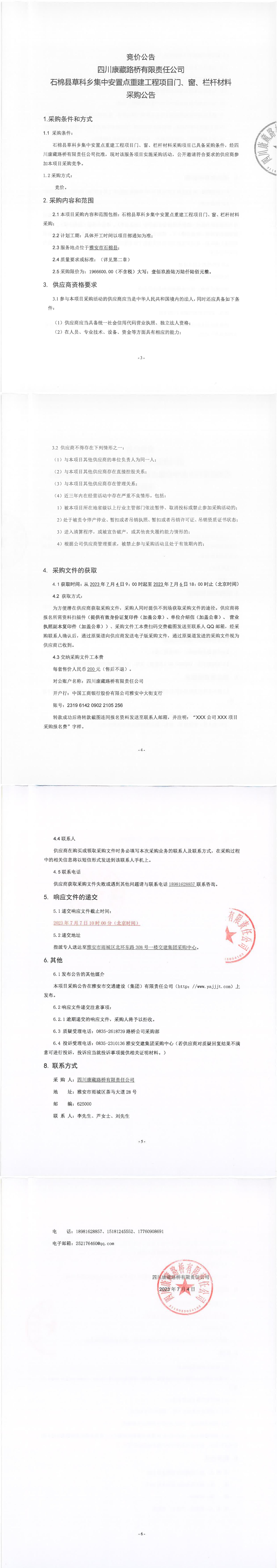 四川康藏路橋有限責(zé)任公司石棉縣草科鄉(xiāng)集中安置點(diǎn)重建工程項(xiàng)目門、窗、欄桿材料采購(gòu)公告
