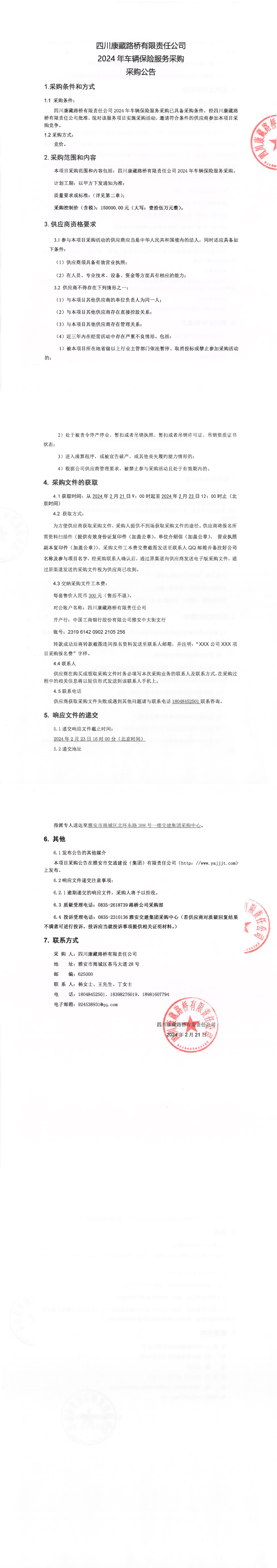 四川康藏路橋有限責任公司2024年車輛保險服務(wù)采購公告