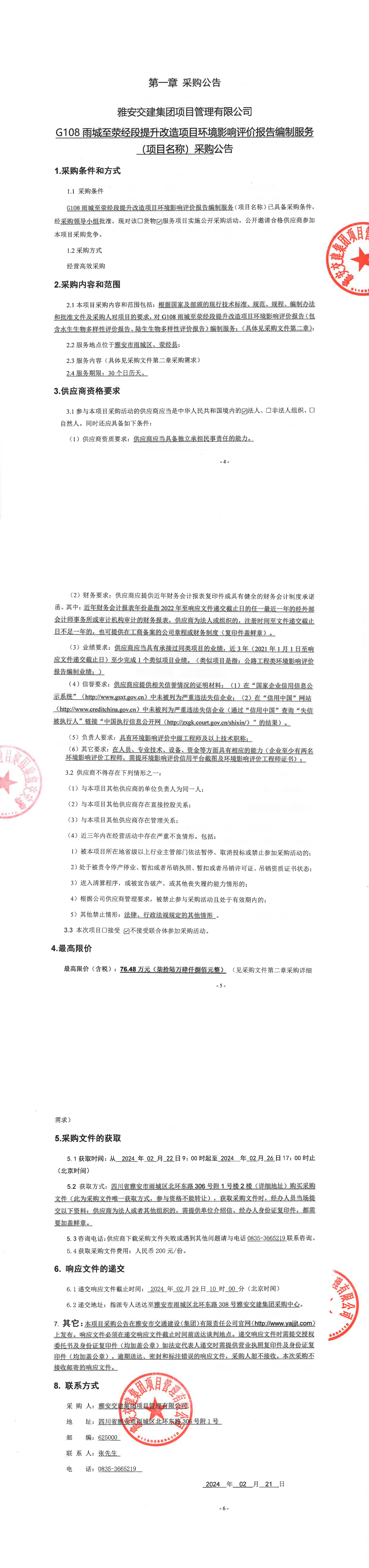 雅安交建集團項目管理有限公司G108雨城至滎經(jīng)段提升改造項目環(huán)境影響評價報告編制服務(項目名稱)采購公告