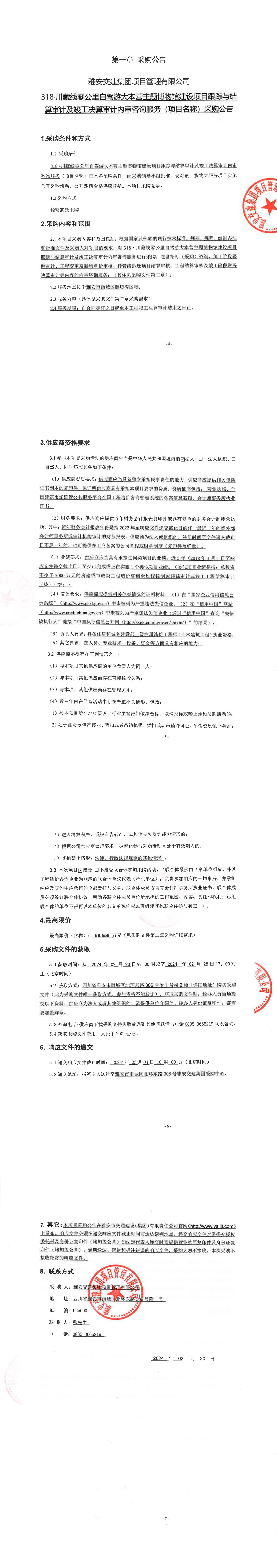 雅安交建集團(tuán)項(xiàng)目管理有限公司318·川藏線零公里自駕游大本營(yíng)主題博物館建設(shè)項(xiàng)目跟蹤與結(jié)算審計(jì)及竣工決算審計(jì)內(nèi)審咨詢服務(wù)采購(gòu)公告