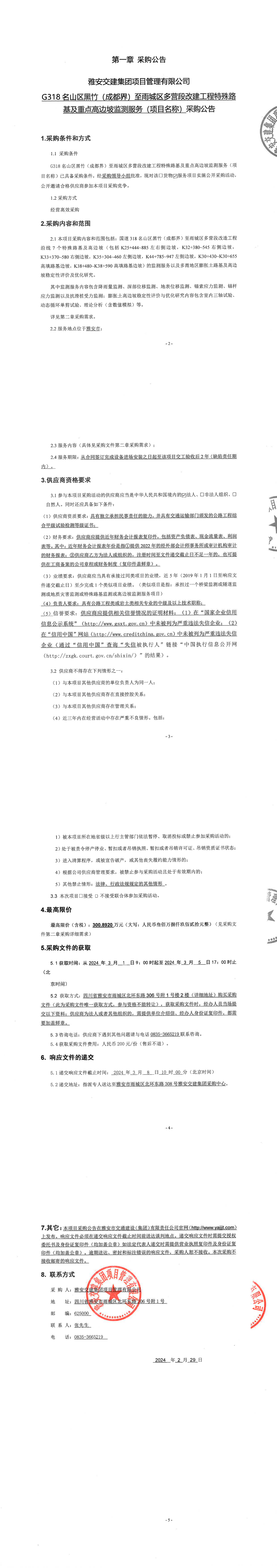 雅安交建集團(tuán)項(xiàng)目管理有限公司國(guó)道318名山區(qū)黑竹(成都界)至雨城區(qū)多營(yíng)段改造工程的特殊及重點(diǎn)路基高邊坡監(jiān)測(cè)服務(wù)(項(xiàng)目名稱)采購(gòu)公告