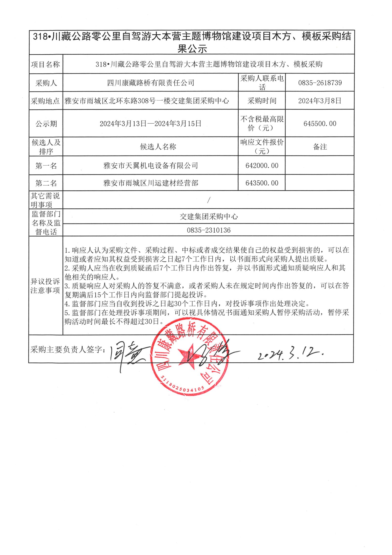 四川康藏路橋有限責任公司318•川藏公路零公里自駕游大本營主題博物館建設(shè)項目木方、模板采購結(jié)果公示