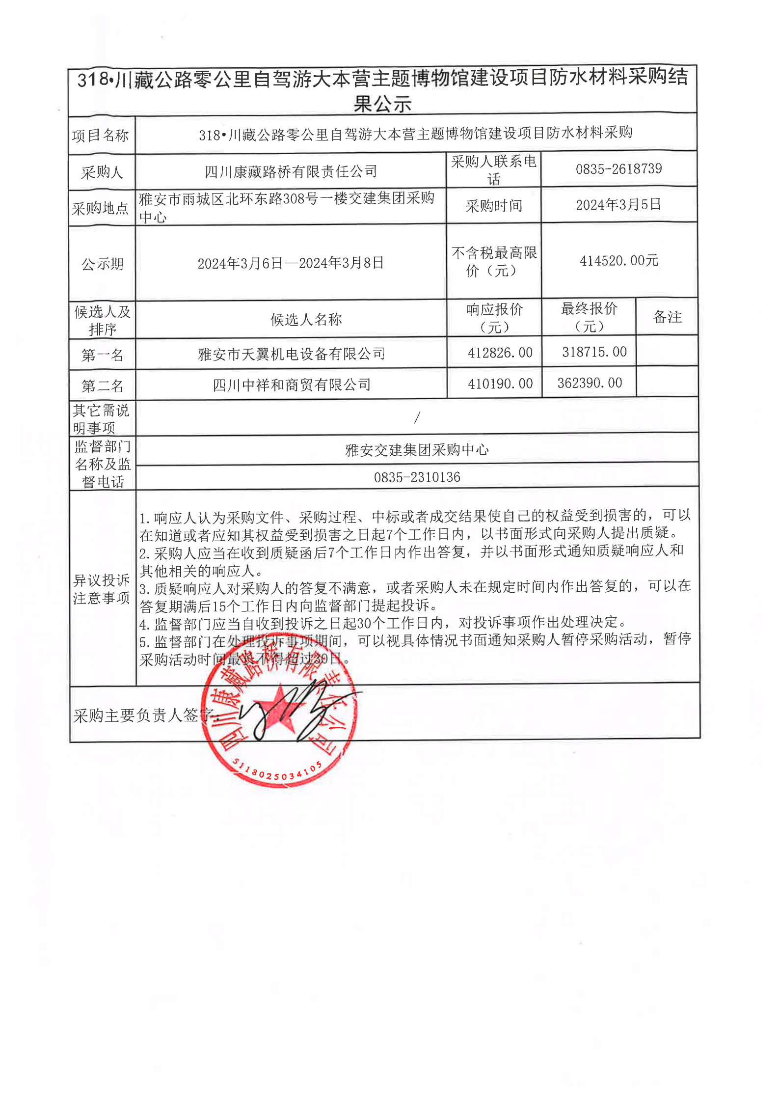 四川康藏路橋有限責任公司318·川藏公路零公里自駕游大本營主題博物館建設項目防水材料采購結(jié)果公示