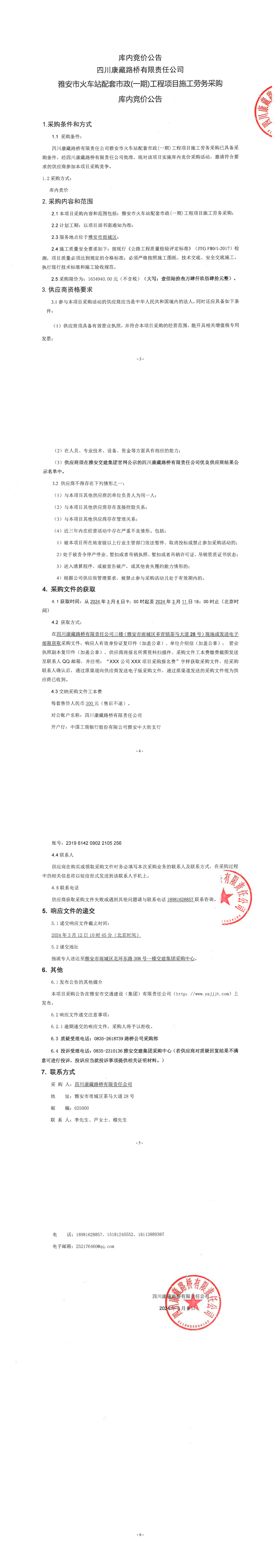 四川康藏路橋有限責(zé)任公司雅安市火車(chē)站配套市政(一期)工程項(xiàng)目施工勞務(wù)采購(gòu)庫(kù)內(nèi)競(jìng)價(jià)公告