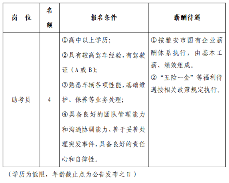 雅安交建集團(tuán)平順檢測(cè)有限公司主要經(jīng)營(yíng)項(xiàng)目為機(jī)動(dòng)車安全技術(shù)檢驗(yàn)、機(jī)動(dòng)車駕駛員培訓(xùn)(科目二、三適應(yīng)性訓(xùn)練)、機(jī)動(dòng)車環(huán)保定期檢驗(yàn)、汽車綜合性能檢測(cè)等相關(guān)業(yè)務(wù)。因業(yè)務(wù)發(fā)展需要面向社會(huì)招聘人員,特公告如下: