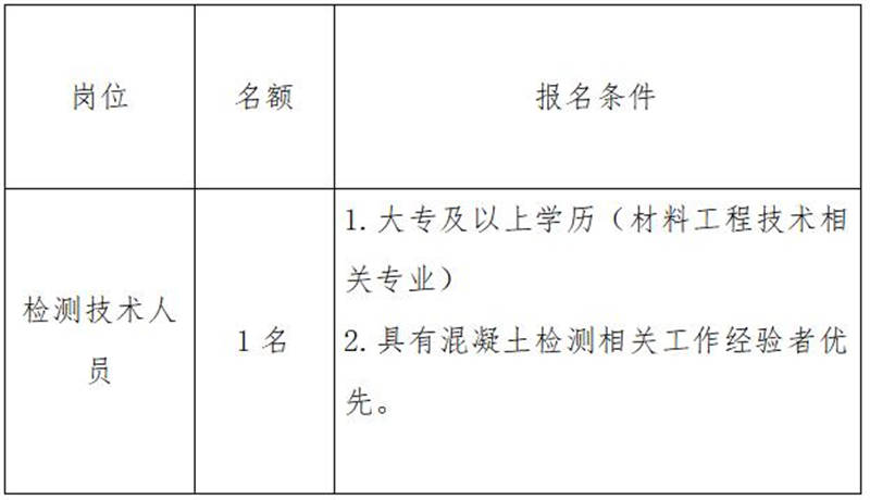 雅安交建集團康居建設工程質量與室內(nèi)環(huán)境污染檢測有限公司是雅安市交通建設(集團)有限責任公司下屬子公司,主要從事民用建筑室內(nèi)環(huán)境污染檢測業(yè)務,F(xiàn)根據(jù)公司業(yè)務發(fā)展需要,擬向社會公開招聘1名技術檢測人員,現(xiàn)將有關事項公告如下: