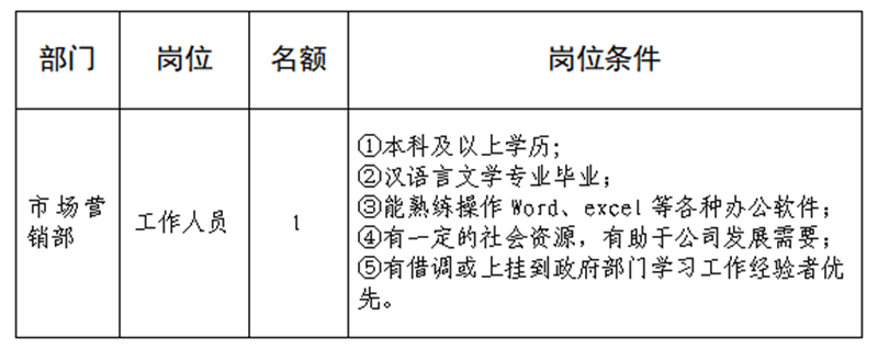 根據(jù)發(fā)展需要,決定面向社會(huì)公開招聘雅安市交通建設(shè)(集團(tuán))有限責(zé)任公司(以下簡稱“雅安交建集團(tuán)”)所屬子公司工作人員1名,現(xiàn)將有關(guān)事項(xiàng)公告如下: