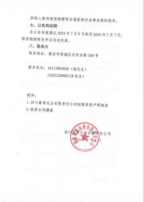 四川蜀通運業(yè)有限責任公司關于蜀通公司1間門面進行掛網(wǎng)的公告附件