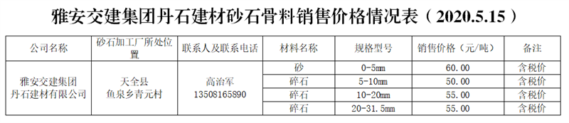 丹石建材有限公司。丹石公司是天全縣人民政府指定天全縣二郎山文化旅游投資開(kāi)發(fā)有限公司與雅安市交通建設(shè)(集團(tuán))有限責(zé)任公司共同組建的合資公司。公司通過(guò)公開(kāi)競(jìng)拍取得儲(chǔ)量2000萬(wàn)方的魚(yú)泉獅子山灰?guī)r礦,并在天全縣魚(yú)泉鄉(xiāng)青元村建立砂石骨料生產(chǎn)線(xiàn),設(shè)計(jì)年產(chǎn)能200萬(wàn)噸。目前,礦山開(kāi)采項(xiàng)目處于在建階段,砂石生產(chǎn)加工廠區(qū)處于設(shè)備調(diào)試和產(chǎn)能驗(yàn)收階段。生產(chǎn)廠區(qū)距雨城區(qū)中心城區(qū)約50公里。