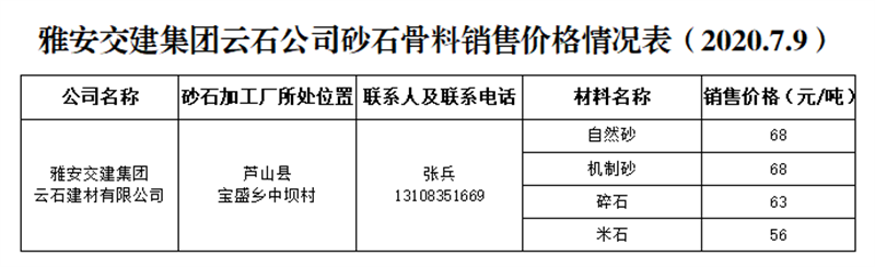 ÑŰ²½»½¨¼¯ˆFÔÆÊ¯¹«Ë¾É°Ê¯¹ÇÁÏäNÊÛƒr¸ñÇé›r±í£¨2020.7.9£©